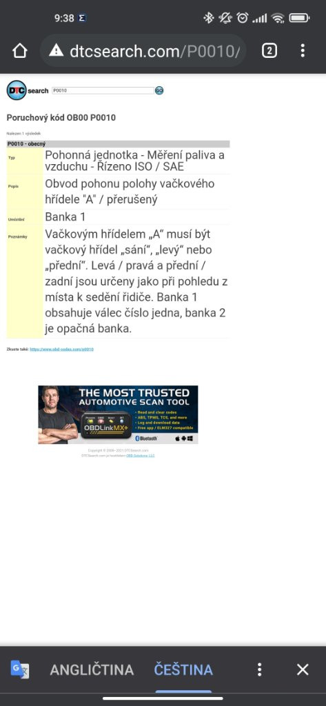 Ahoj. Objevil se problém na mém megane3 1.6 81kw. Začala vyskakovat hláška "antipollution system" a auto ztratilo výkon. Ani po vymazání hlášky se to nezlepšilo. Navic mi vyskočila chyba viz screen. Prosim o radu co by mohlo být příčinou problemu. Diky